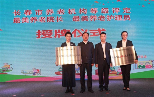 2018年9月28日下午,首届长春市养老机构等级评定授牌仪式、“双美”评选活动表彰大会在长春市欧亚卖场举行。长春市民政局领导向3A级以上的养老机构授牌,向10位最美养老院院长、20位最美养老护理员颁发了奖杯和证书。
