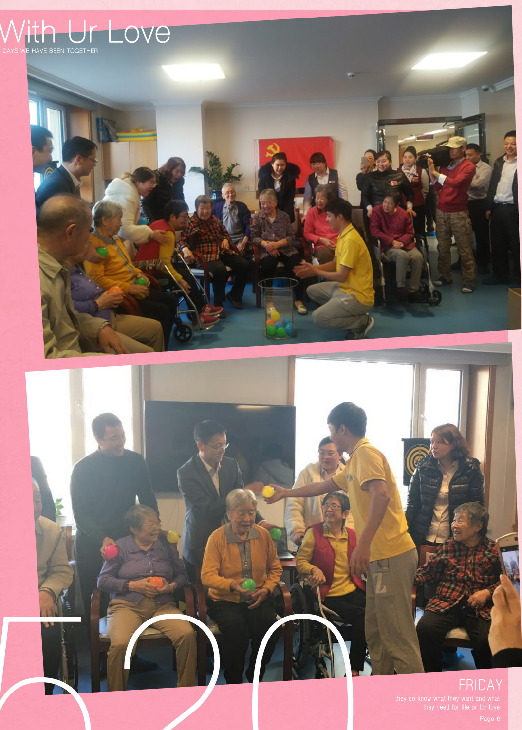 党、团员们兴致勃勃地和老人们一起做了投球游戏,以及苹果爱心传递游戏,还给老人们带来了水果、大米、白面、豆油等慰问品,******还在曹院长的引导下参观了公寓,大家对怡康园的环境设备、人文氛围给予了高度赞扬,真心希望更多的老人们都能享受到怡康园这样的服务,老有所依,老有所养,老有所乐!