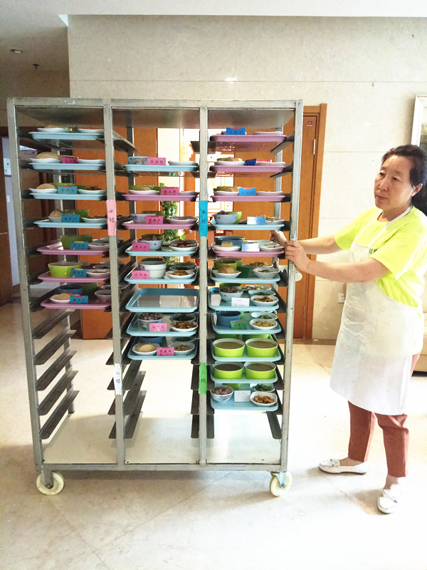 在怡康园发展的过程中,我们把日方提供的介护记录、排班表、岗位职责和工作内容、能力考核机制、辅助器具等全部进行了调整,变成了更适合怡康园的模式。在怡康园,除了原装日本进口的机械浴缸,仅洗浴用的轮椅就有几种,这些轮椅有的是******工根据介护团队要求设计、焊制的,有的是按照不同老人的身体状态利用旧轮椅改造的,分别用来为骨折和身体不能打弯、身体歪斜不能坐直、洗澡时排便等几种老人提供洗浴服务。当发现有些意识不清晰或者身体不受控制的老人,手脚容易磕到床挡,介护职员就自己缝制软包,发现有的老人轮椅容易卡到脚,就自掏腰包买海绵把轮椅脚踏包起来,发现有的老人指甲太硬,普通指甲刀修剪不了,就自己购买专业的修甲刀具,甚至自学修脚的手艺,利用休息时间义务为老人服务,洗衣房有老人的姓******,方便收发衣物。食堂有餐牌,注明每位老人用餐形态和种类,还有由员工自己设计焊制的送餐车。可以说,每个细节的改善,都代表了我们对老人的拳拳爱心,每一个自制器具上,都凝聚着我们的心血。