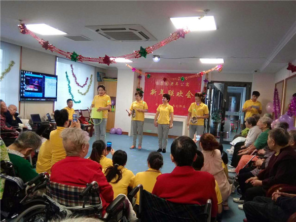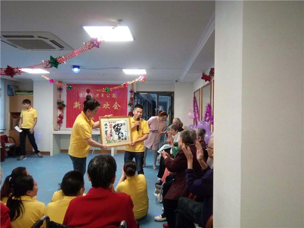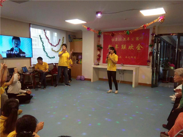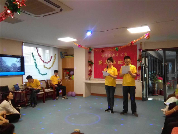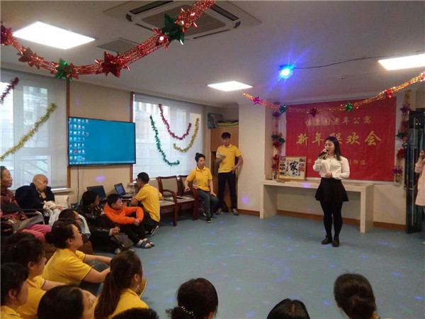 2017年1月23日,怡康园二楼张灯结彩,喜气洋洋。公寓“凝心远航 再创辉煌”新年联欢会就在这里举行。下午1点半,经过精心打扮、笑容满面的老人们在介护职员的协助下陆续就座,联欢会拉开序幕。