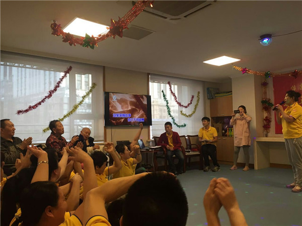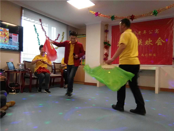 表演节目形式多样,动静穿插,很好地调动了观众的情绪。联欢会持续近两个小时,没有一位老人中途离场。歌曲演唱时大家积极回应,一起合唱。小拜年、三句半、脱口秀把大家逗得哈哈大笑。朗诵《旅程》和大合唱让大家激情澎湃。而歌曲《父亲》和朗诵《我爱我家》表演时,表演者真情流露,几次泣不成声,观众也都热泪盈眶。