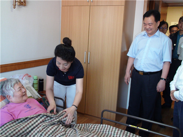 领导们在院长曹莉的引导、介绍下,参观了设施内的环境,看望了老人,并了解了老人的生活状态和员工的工作情况。院长曹莉说,现在吉林省的养老行业发展已经走起国际范儿,各养老机构主动与日本、美国、丹麦、韩国和台湾等地区的养老机构合作,引进先进的养老理念及技术,努力促进我市养老事业的发展。