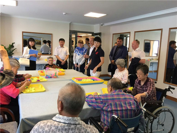 8月31日上午10点,连日阴雨的长春天空难得一片蔚蓝,继丹麦、美国、韩国、日本之后,怡康园老年公寓迎来了前来参加东北亚博览会的俄罗斯客人,克拉斯诺亚尔斯克市副市长、社会经济发展部部长谢多夫.谢尔盖.亚历山德罗维奇一行人,在人社局张宝山副局长等领导的陪同下,对怡康园老年公寓进行了认真考察,对设施内环境和人文给予了充分肯定和高度评价。