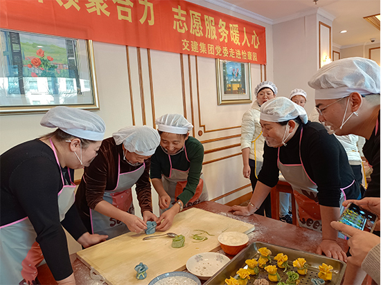 铭党员初心,立党员格言,践党员职责,用爱温暖夕阳。交建集团志愿者们不仅为长者带来了实用合适的礼物,还现场亲手制作了花式面点福袋,真心诚意祝愿长者身体健康,福寿延绵。