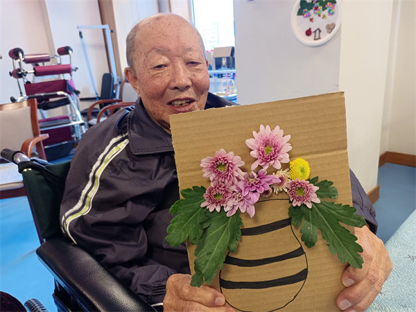 一份插花,是一处美景;一份手工糕点,是一份孝心;一杯菊花茶,是一份祝福。此景,映射出长者满心快乐幸福的光芒;此情,凝聚着员工满心敬老爱老的心意。