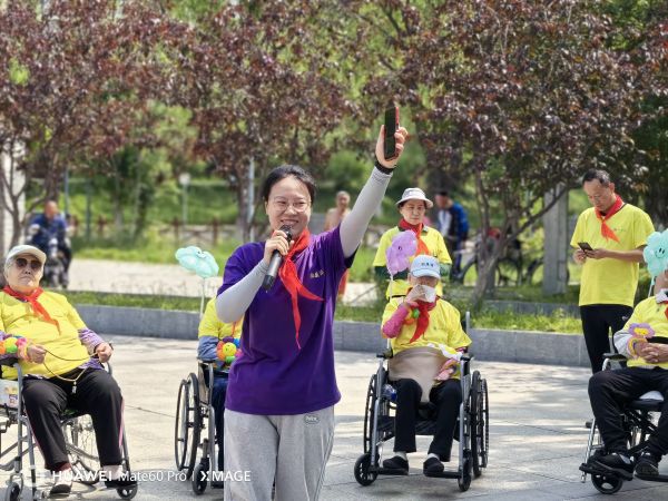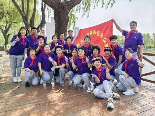6月4日上午8点,身穿着明亮醒目的服装,佩戴着鲜艳夺目的红领巾,一支由长者、家属和怡康园工作人员组成的特殊队伍有序通过红绿灯,来到伊通河边,蓝天白云青山绿水,眼中有花心中有爱,多么美好惬意的生活!