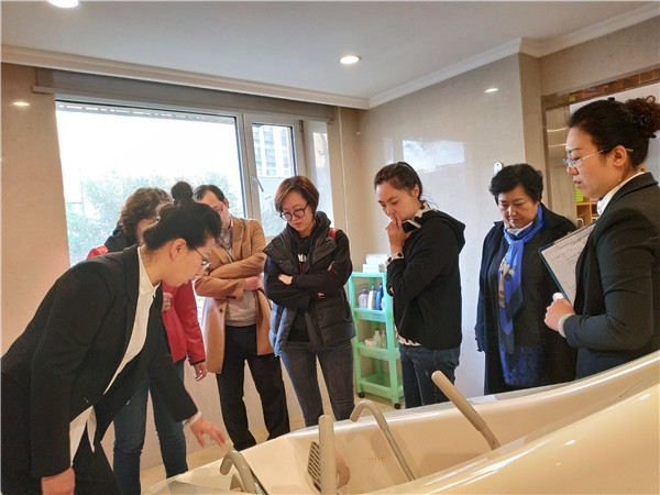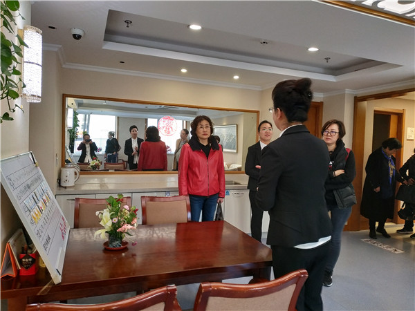 工作组在怡康园执行董事曹莉和院长郗昕的引导下,首先参观了自理、护理居室、医疗和公共区,随后在二楼的康复训练室进行了座谈,了解老年人的生活照护情况,详细询问了老年人慢性病、常见病、多发病的预防及诊疗、药品管理、紧急救治、临终关怀服务等老年人健康管理相关的工作内容和方法。